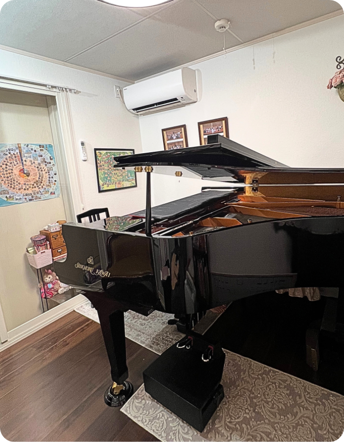 カワイのShigeru Kawaiのグランドピアノ(SK-3)を使用してレッスンしております。